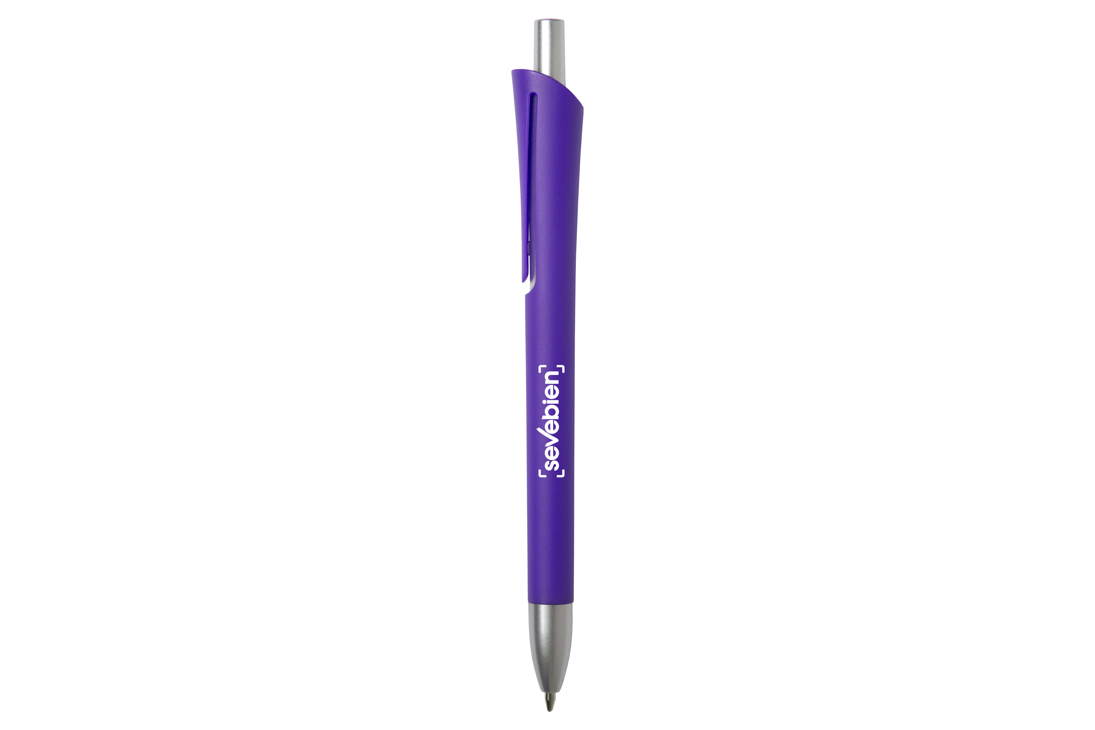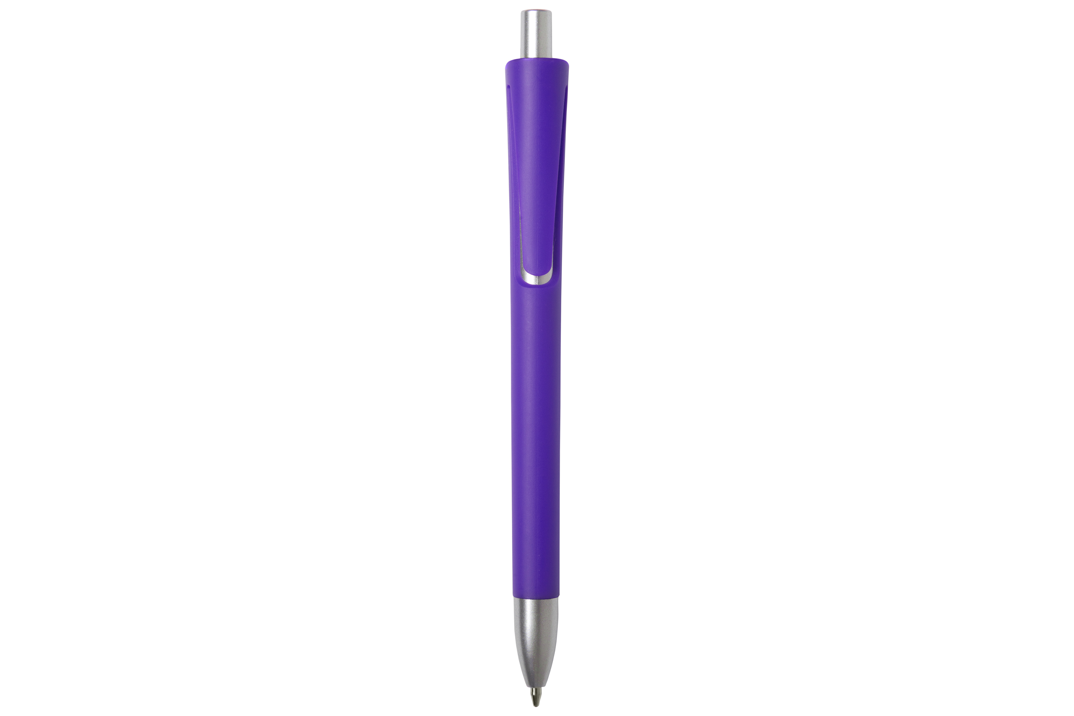 Plástico. Bolígrafo con cuerpo plástico de color, botón pulsador y puntera color plata. Tinta negra
