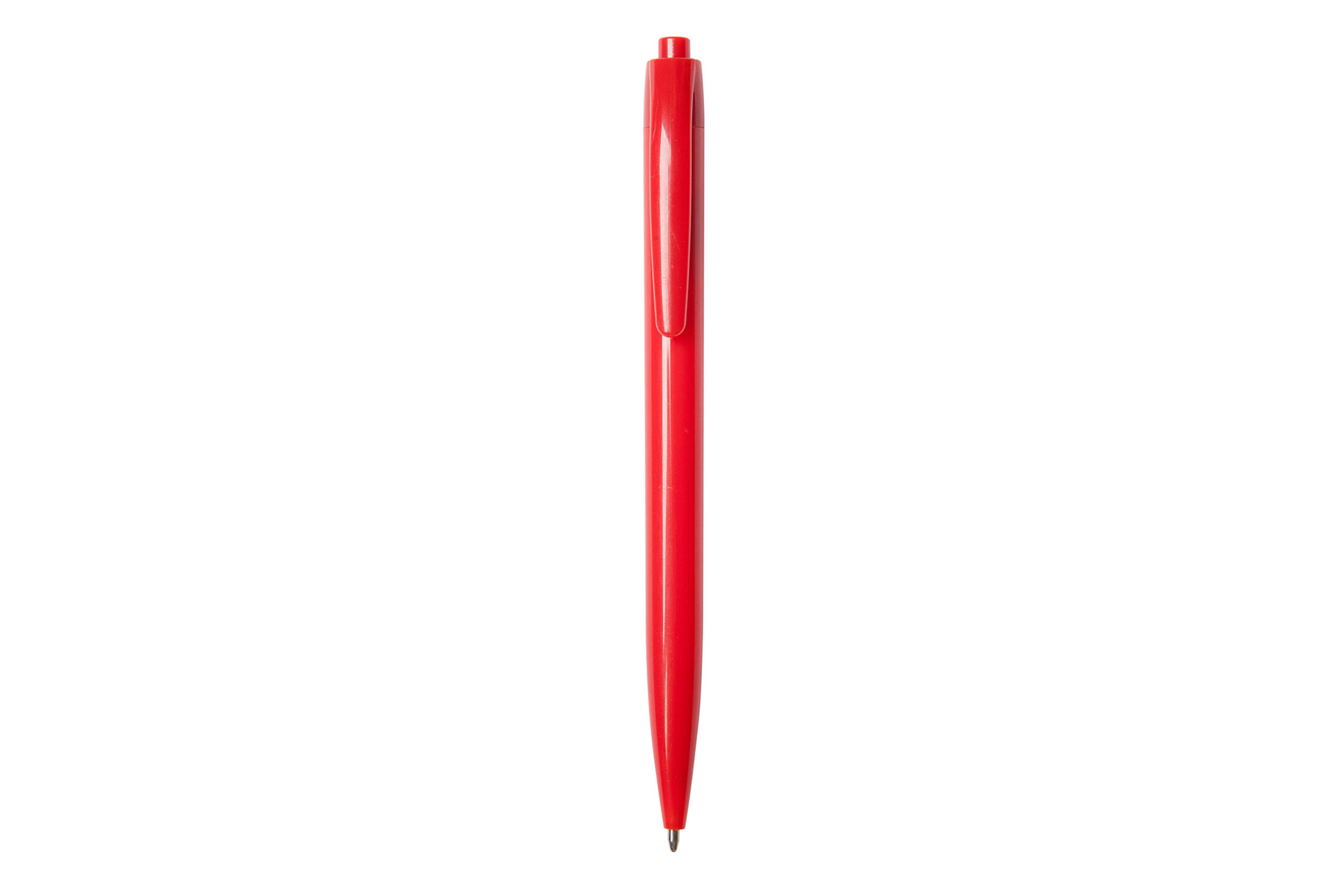 Plástico. Bolígrafo con cuerpo plástico de color con pulsador. Tinta azul.