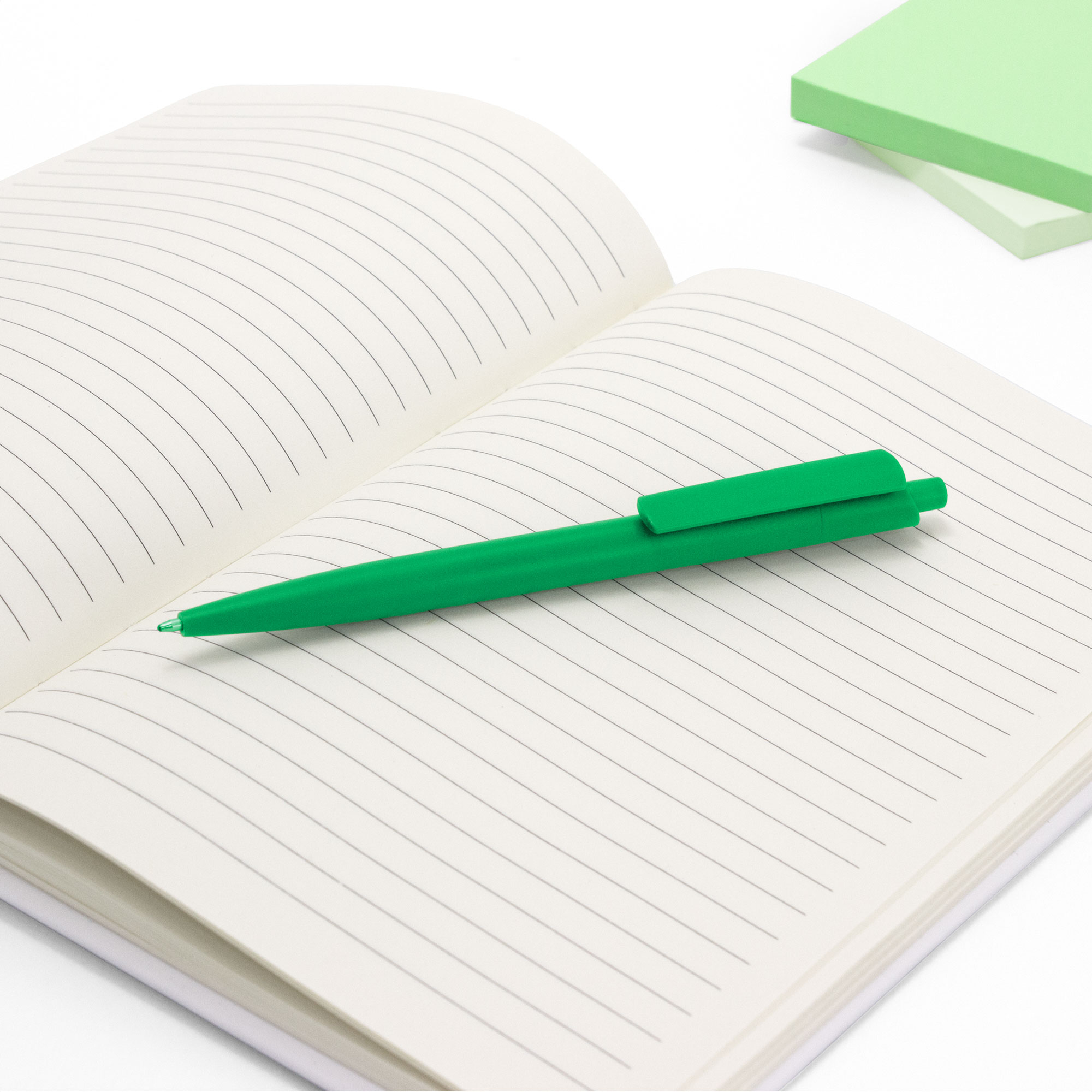 Bolígrafo retráctil. Cuerpo de diferentes colores. Acabado mate. Pulsador, clip y puntera del mismo color del cuerpo. Amplia área de impresión.