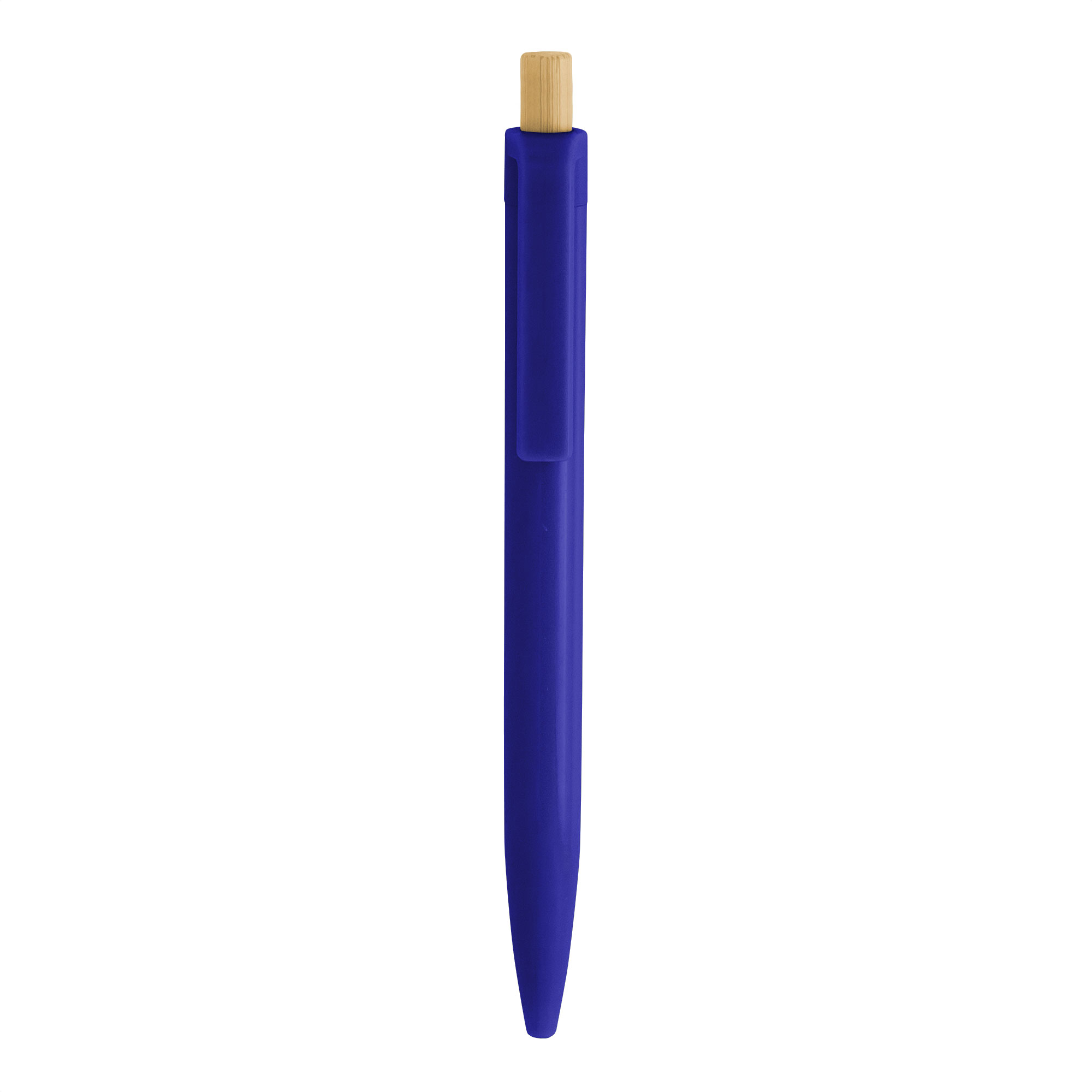 Bolígrafo retráctil. Cuerpo plástico en diferentes colores acabado brillante. Pulsador de bambú.