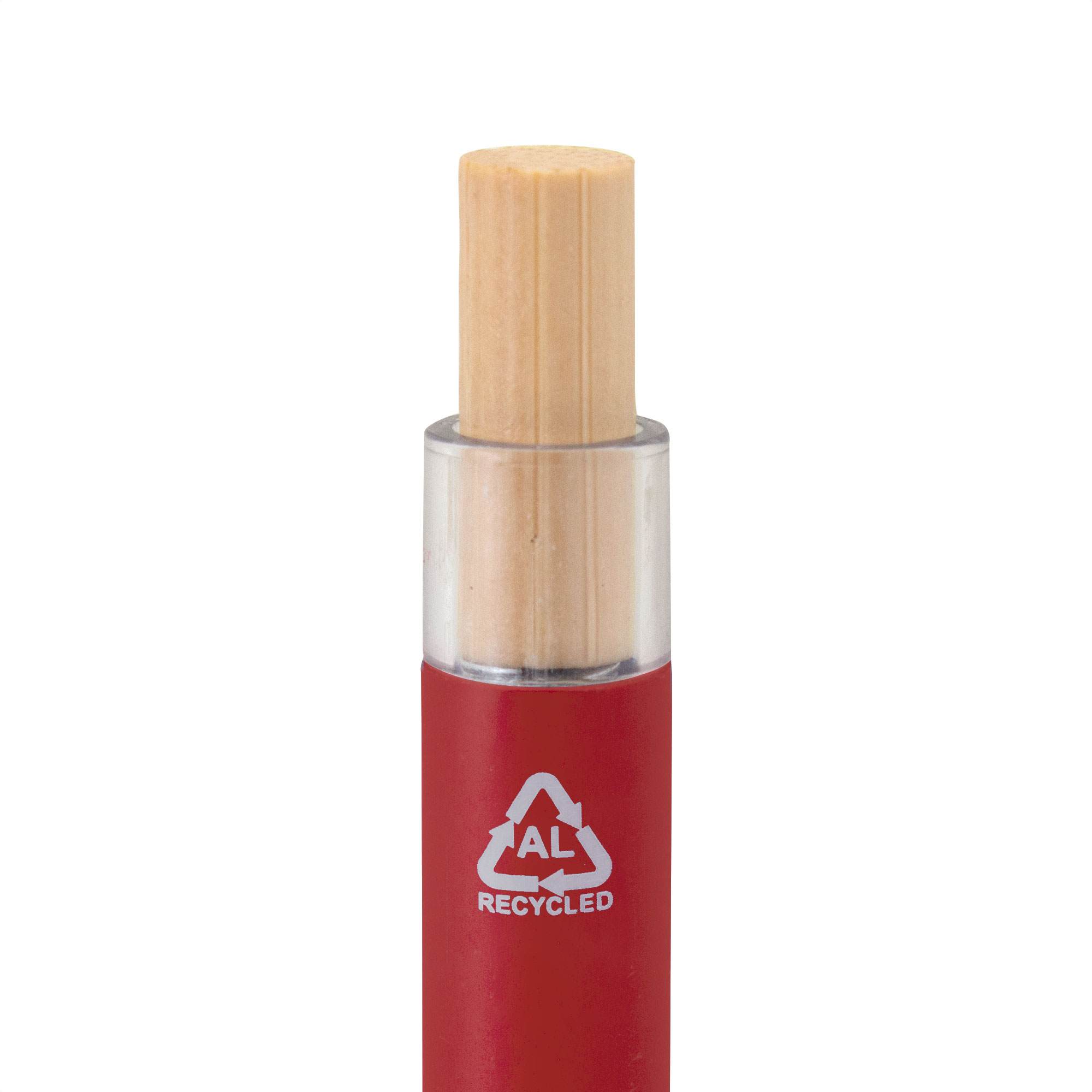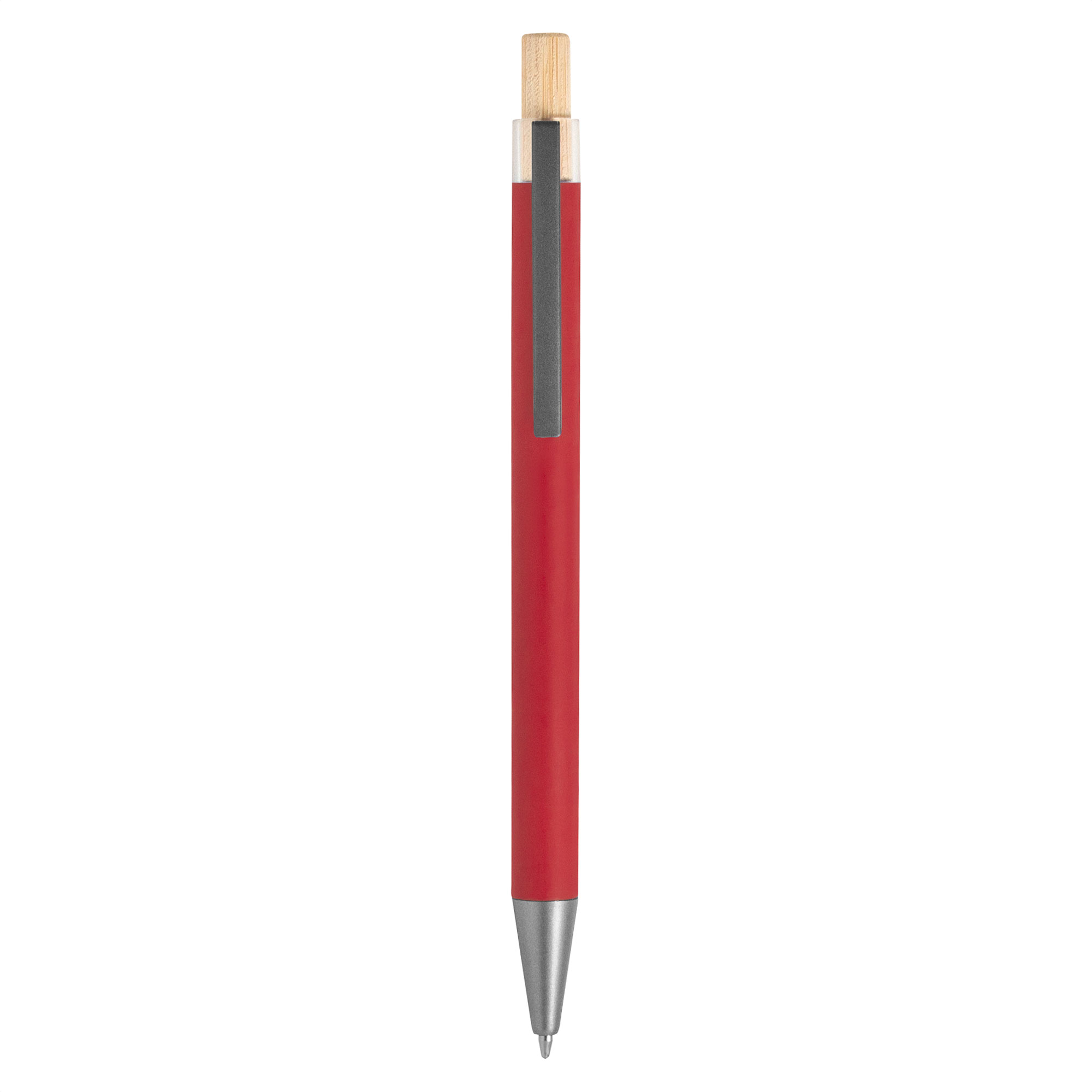 Bolígrafo retráctil. Cuerpo metálico en diferentes colores acabado mate. Clip metálico y puntera plástica color gris acabado mate. Pulsador de bambú.