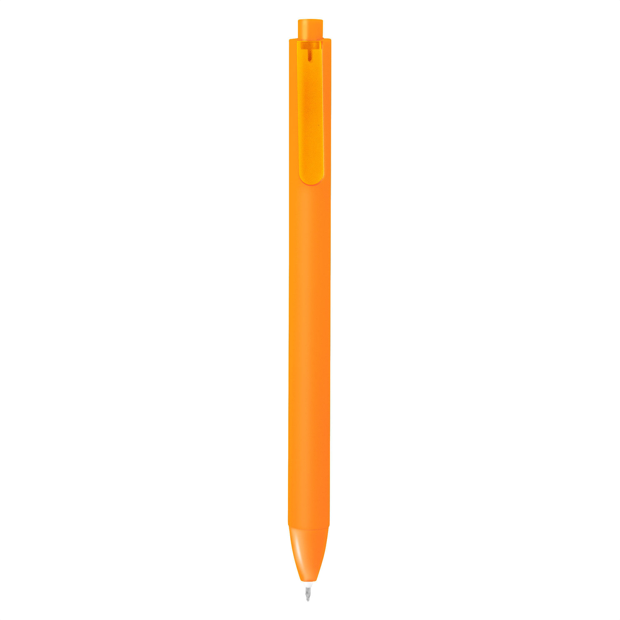 Bolígrafo retráctil con tinta gel. Cuerpo de diferentes colores con acabado mate suave al tacto. Pulsador y puntera del mismo color del cuerpo acabado brillante. Clip translúcido del mismo color del cuerpo.