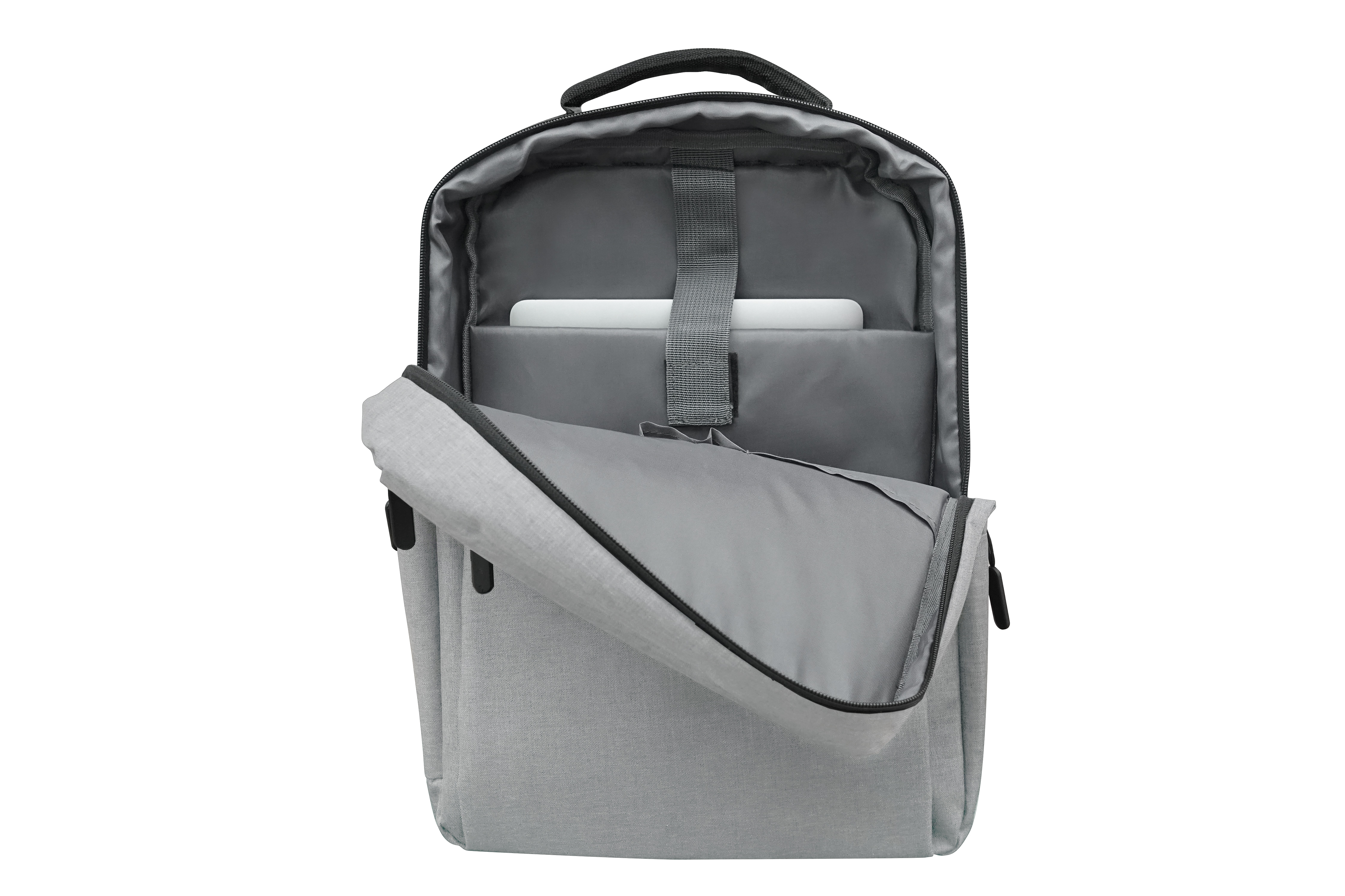 29 x 41 x 12 cm. Capacidad 14 litros. Políester 300D. Mochila portanotebook de hasta 16 pulgadas. Compartimento principal con bolsillo acolchado porta notebook y bolsillos organizadores de accesorios. Bolsillo frontal y lateral con cierre. Correas regulables y espalda acolchadas. Tiradores de cierres engomados.