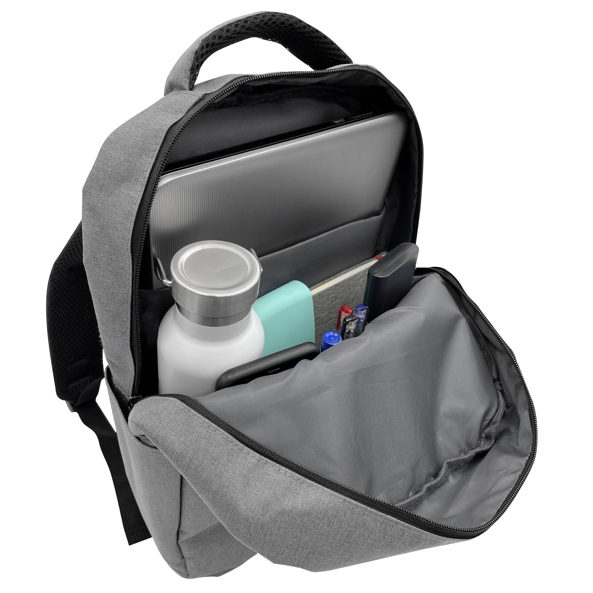 29 x 43 x 11 cm. Capacidad 13 litros. Poliester 300D Wulong. Mochila portanotebook de hasta 15 pulgadas. Interior con bolsillo acolchado y múltiples compartimentos para accesorios. Bolsillo principal en el frente con cierre y otro bolsillo lateral para trasladar tu botella y mantenerte hidratado. Correas regulables y espalda acolchadas con red. Tiradores de cierres metálicos.