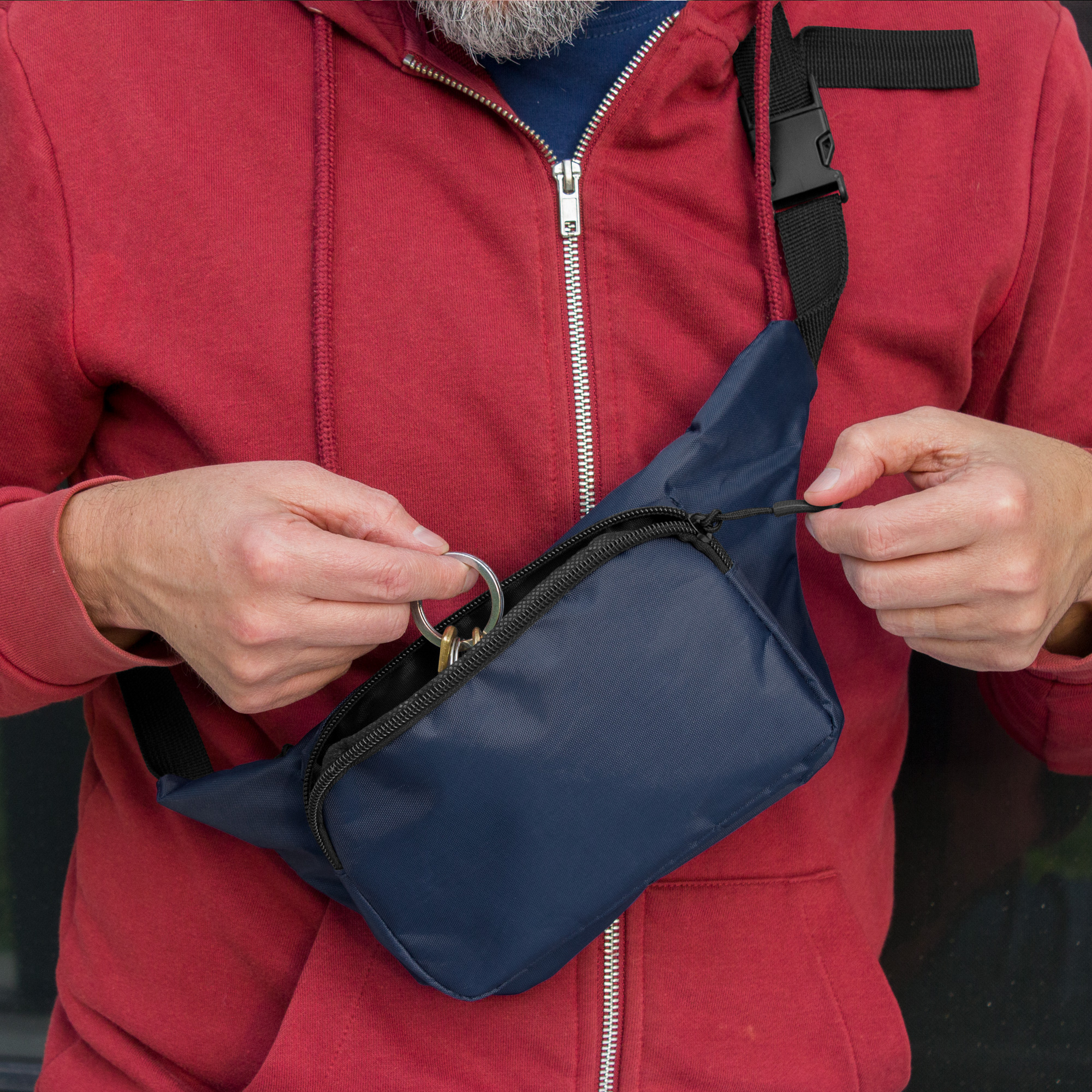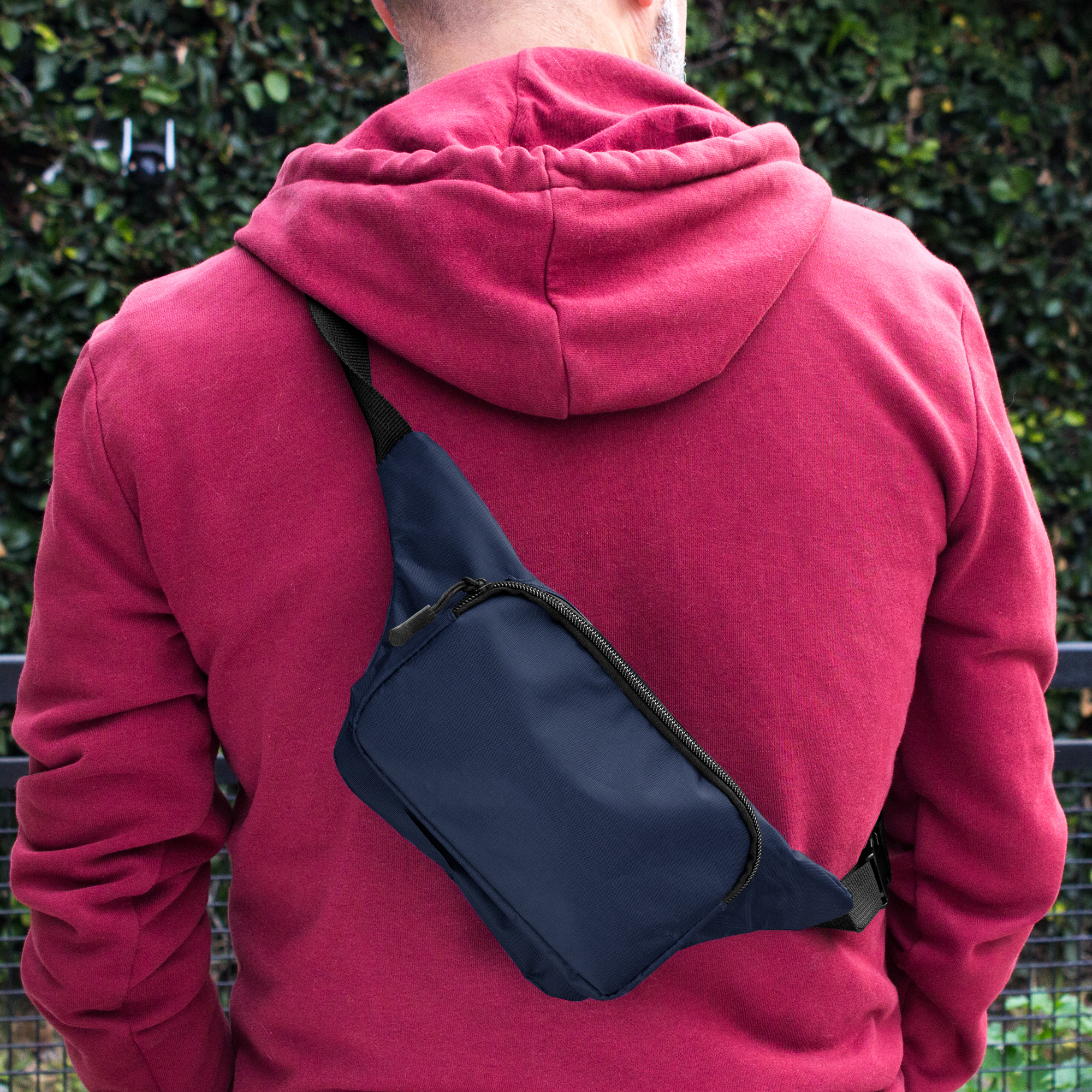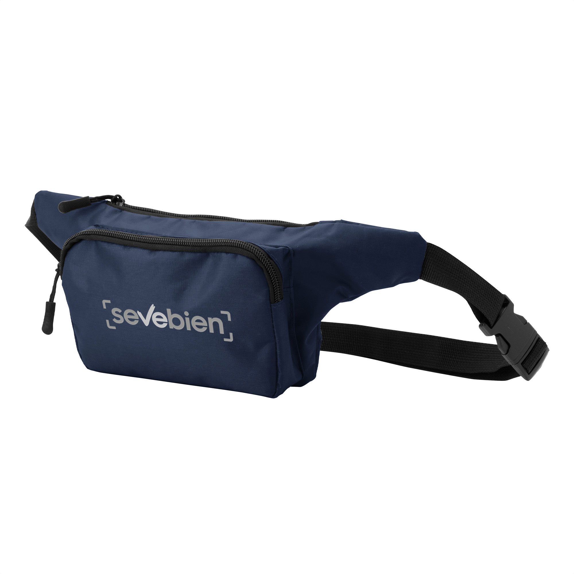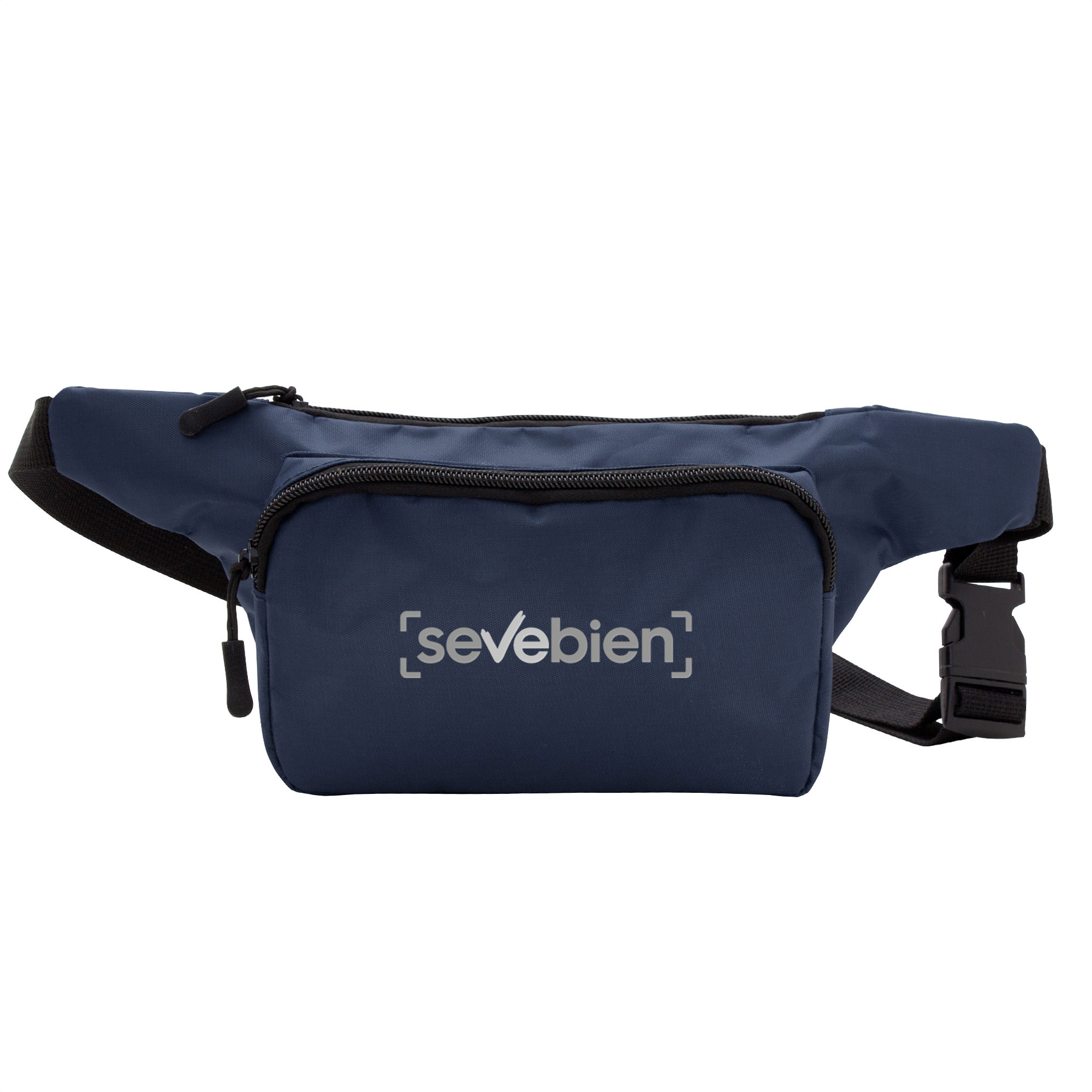 Banano con 2 compartimentos con cierre. Amplio bolsillo frontal. Correa ajustable con herrajes plásticos. Cierres y tiradores de cierre plásticos de color negro.