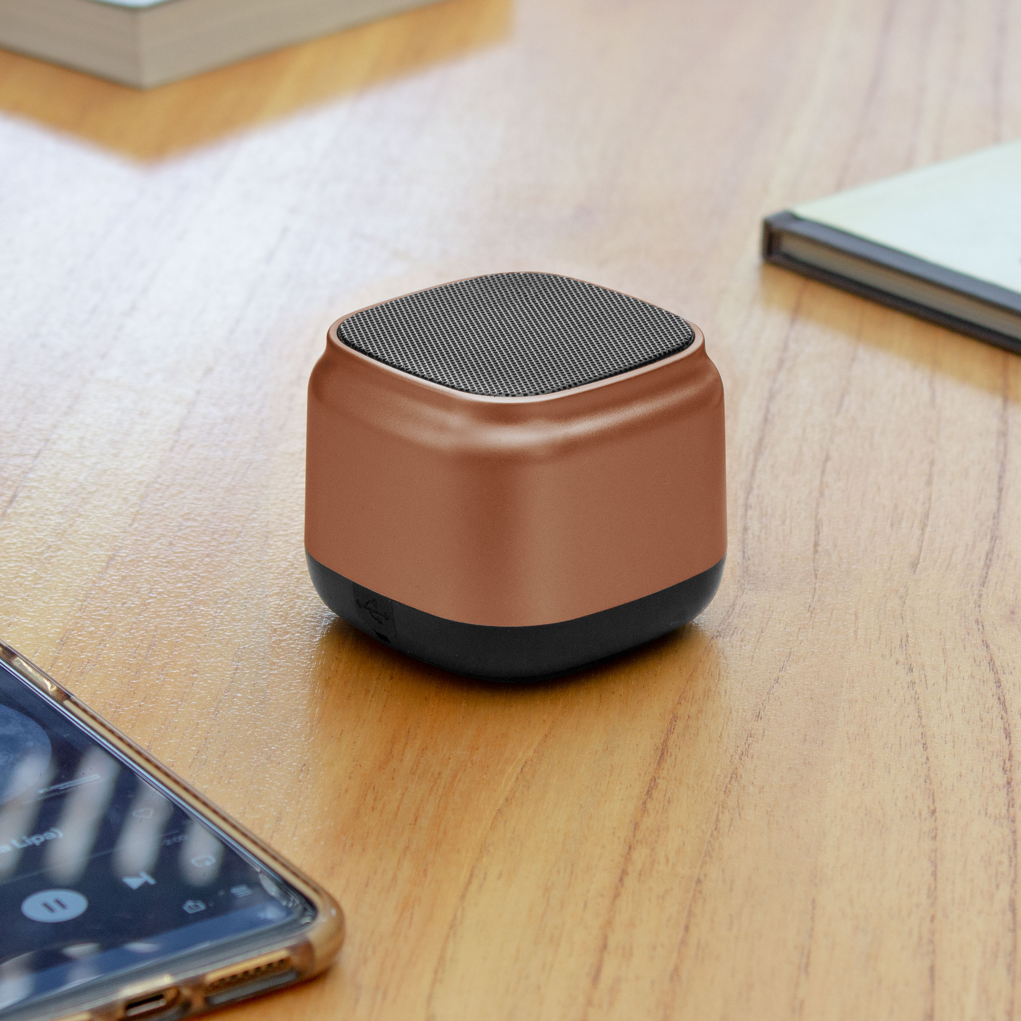 Parlante bluetooth. Posee botonera de silicona en la base y malla metálica negra en la parte superior. La base del parlante es antideslizante. Micrófono incorporado. Permite recibir llamadas. Cable de carga y conexión USB tipo C color negro.