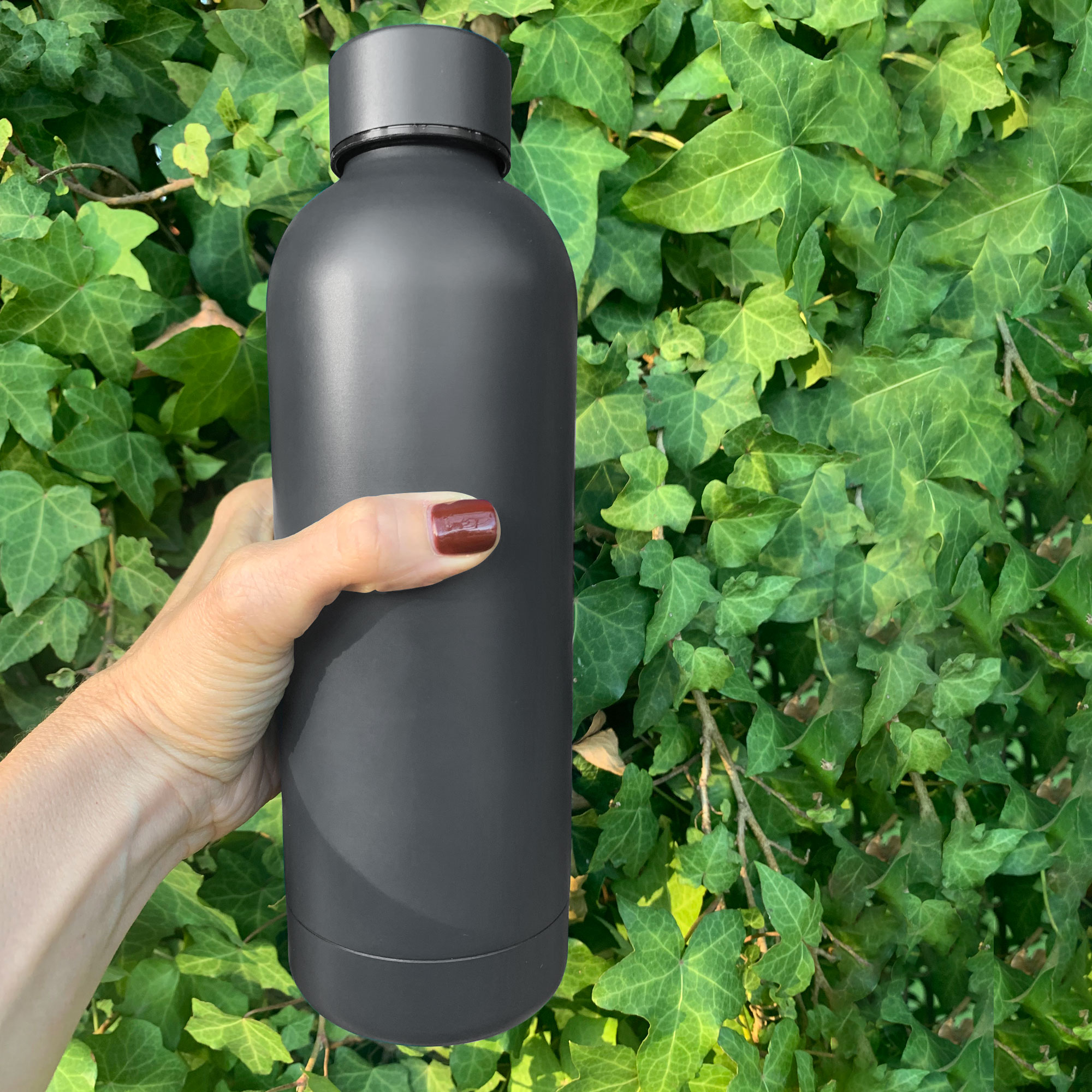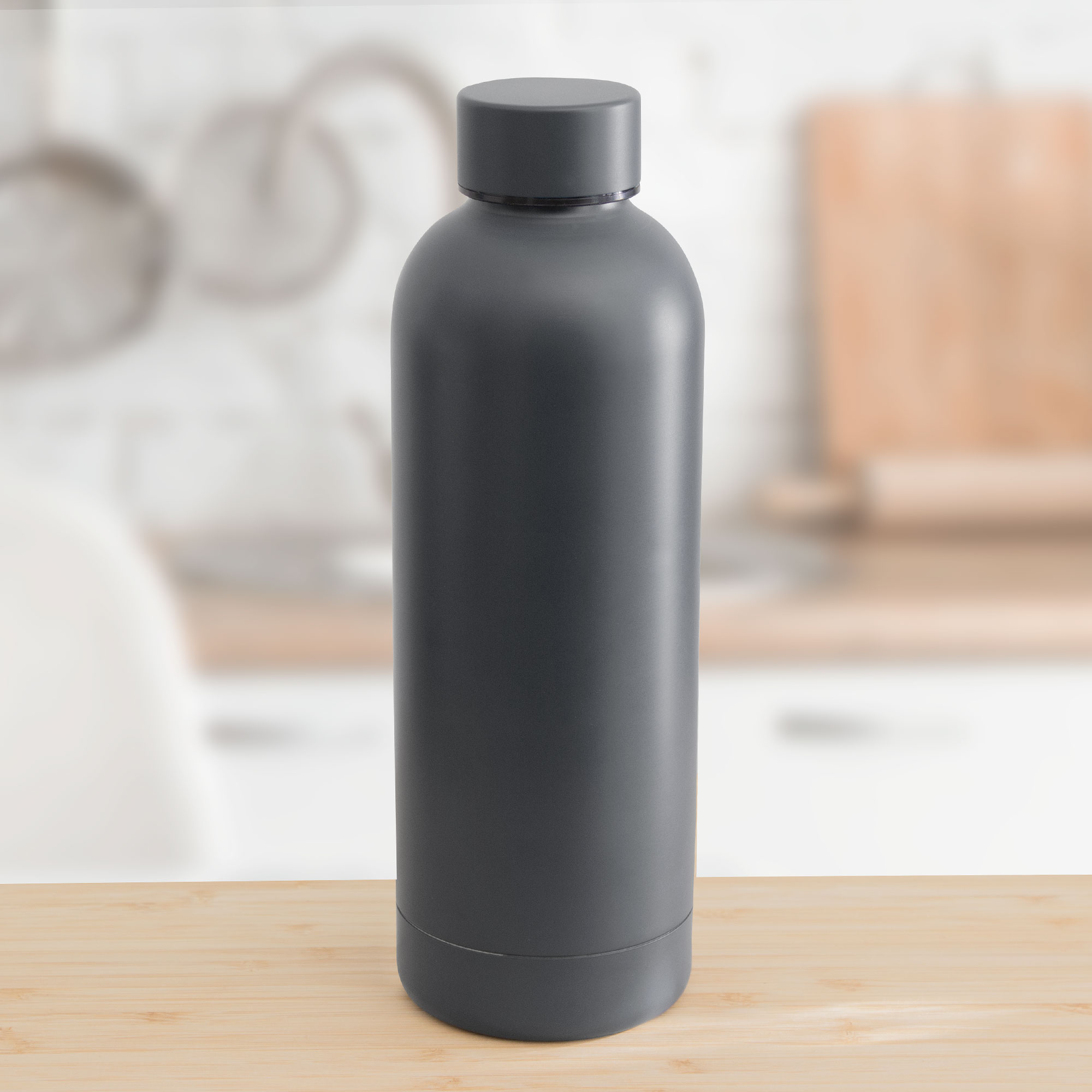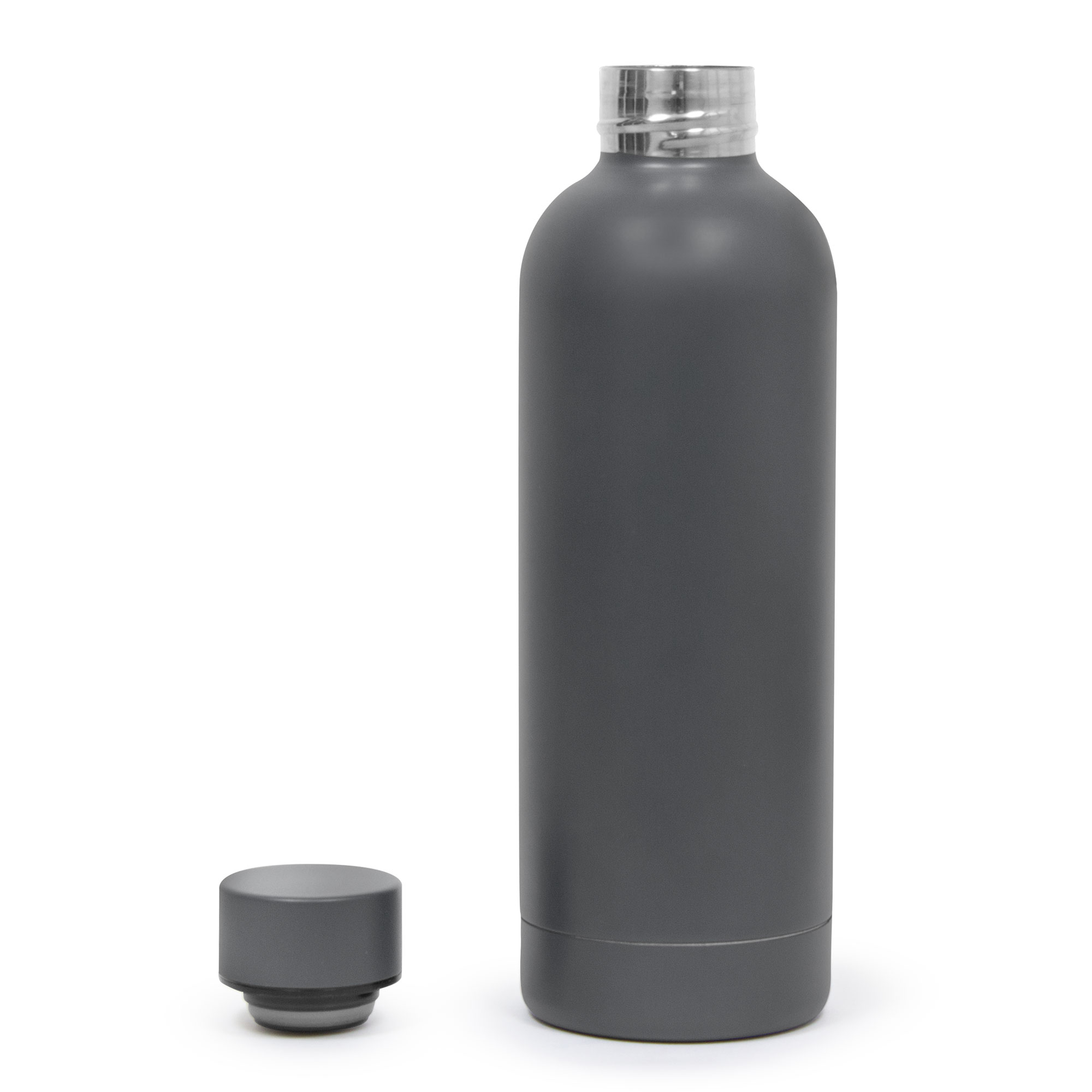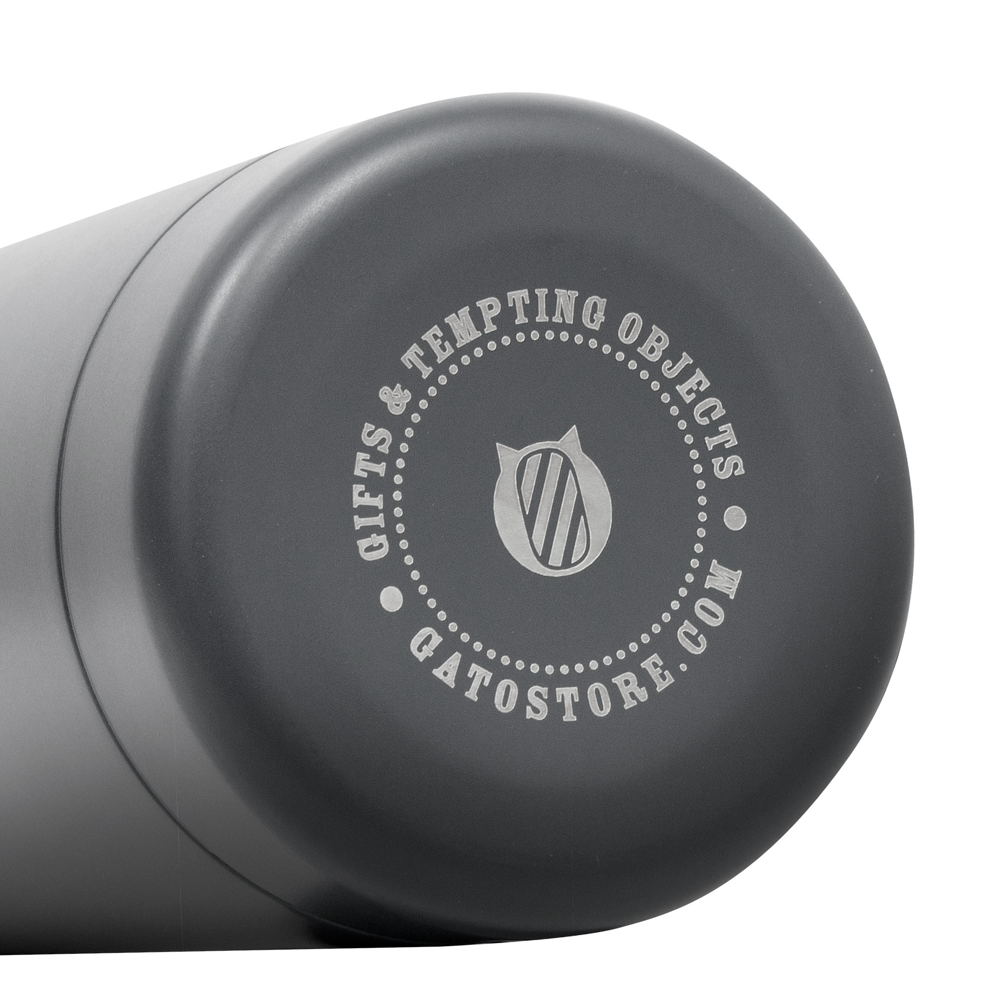 Ø 7.4 x 22 cm. Capacidad 500 ml. Acero inoxidable. Botella doble pared, sellada al vacío. Interior en acero 304 y exterior en acero 201. Mantiene hasta 12 hs la temperatura de las bebidas calientes y 24 hs de las bebidas frías. Presentación en caja de regalo.