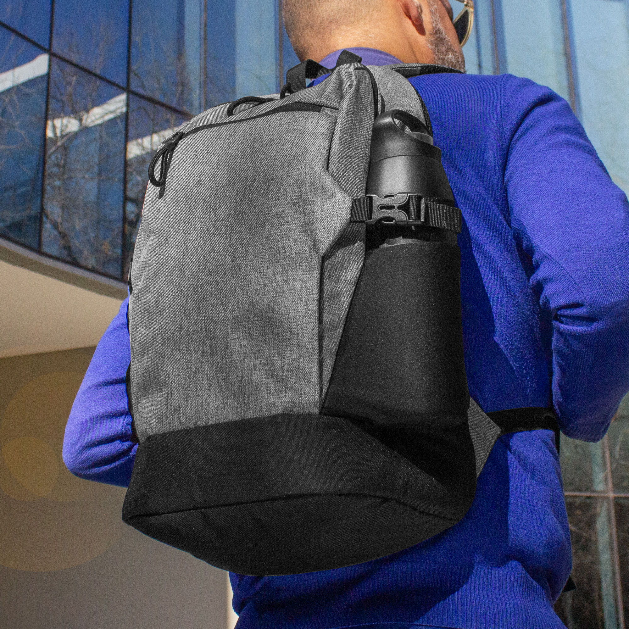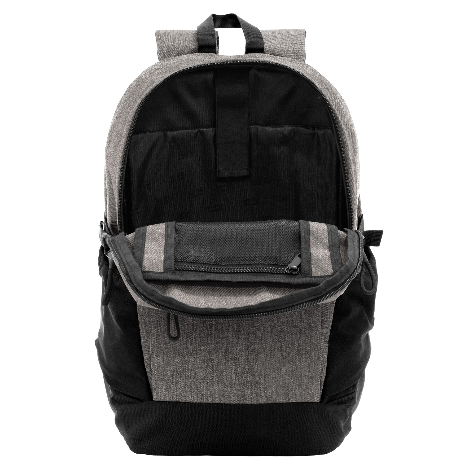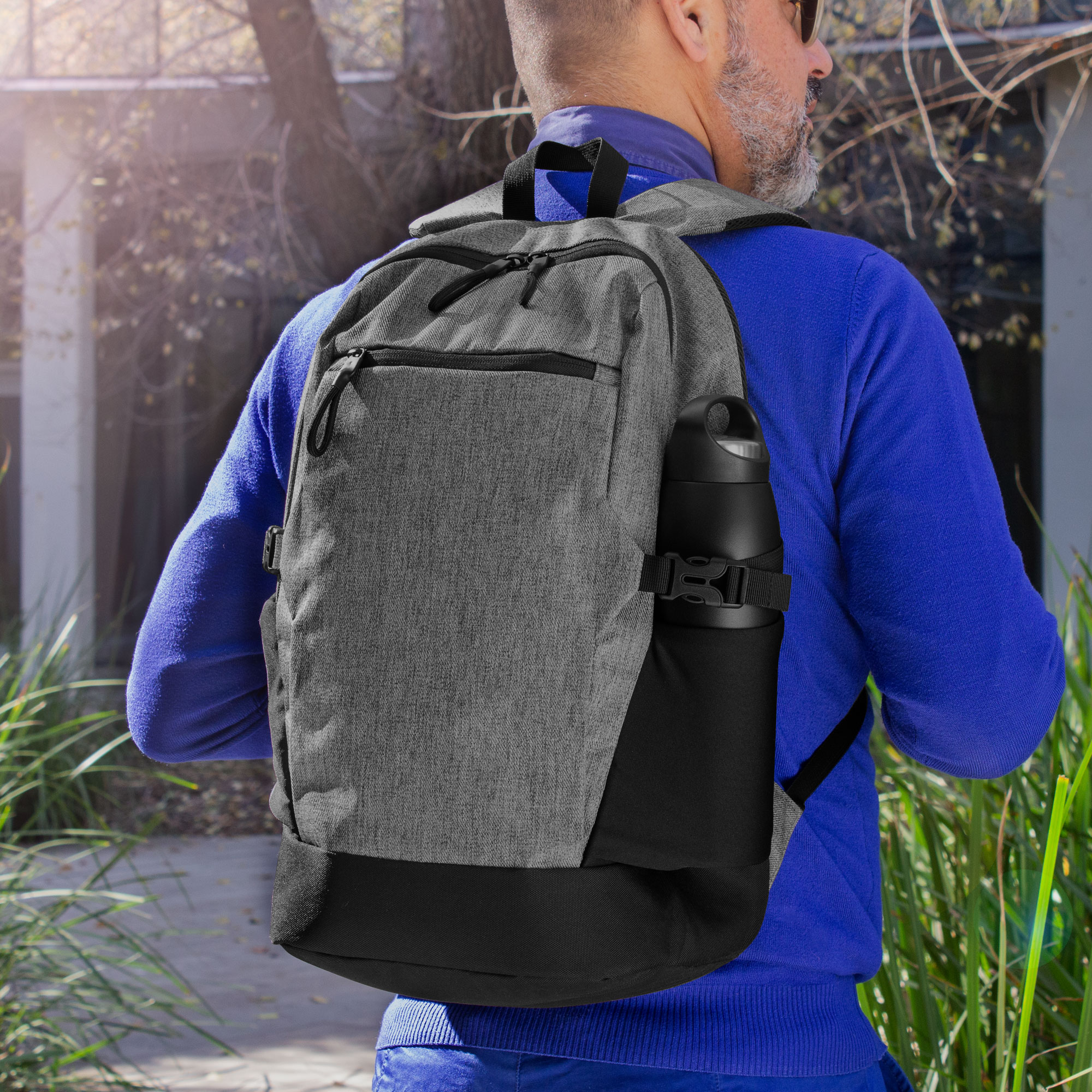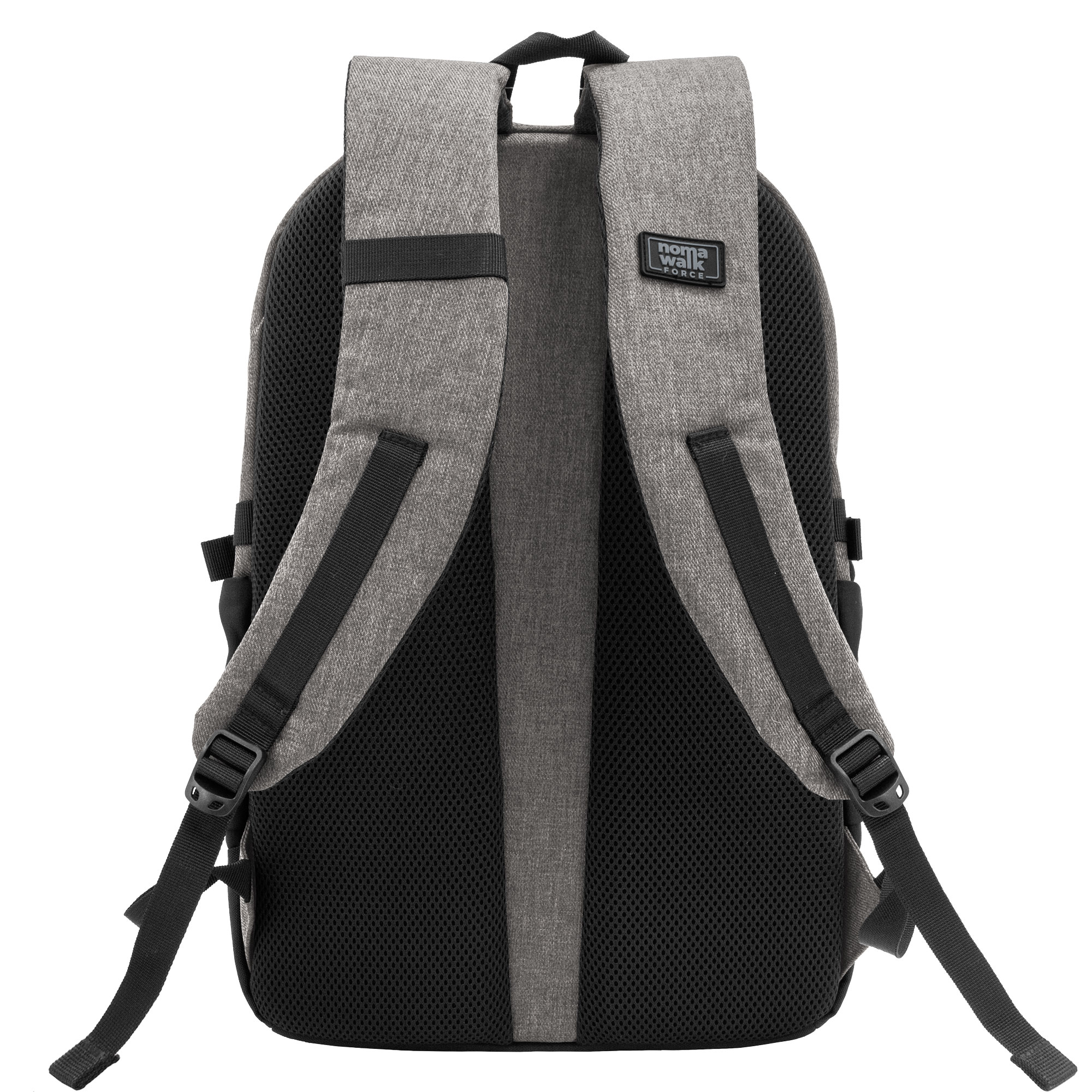 30 x 45 x 17 cm. Capacidad 23 litros aprox. Sarga de algodón y Poliéster. Mochila portanotebook. Compartimento principal con cierre. Interior forrado impreso con logo Nomawalk, con división acolchada porta notebook de hasta 16 pulgadas y bolsillo de red con cierre. Bolsillo frontal horizontal con cierre y dos bolsillos de lycra laterales porta botellas y accesorios, con cintas de amarre. Correas regulables y espalda con red para ventilación, ambas acolchadas. Cierres metálicos con tiradores de cordón.