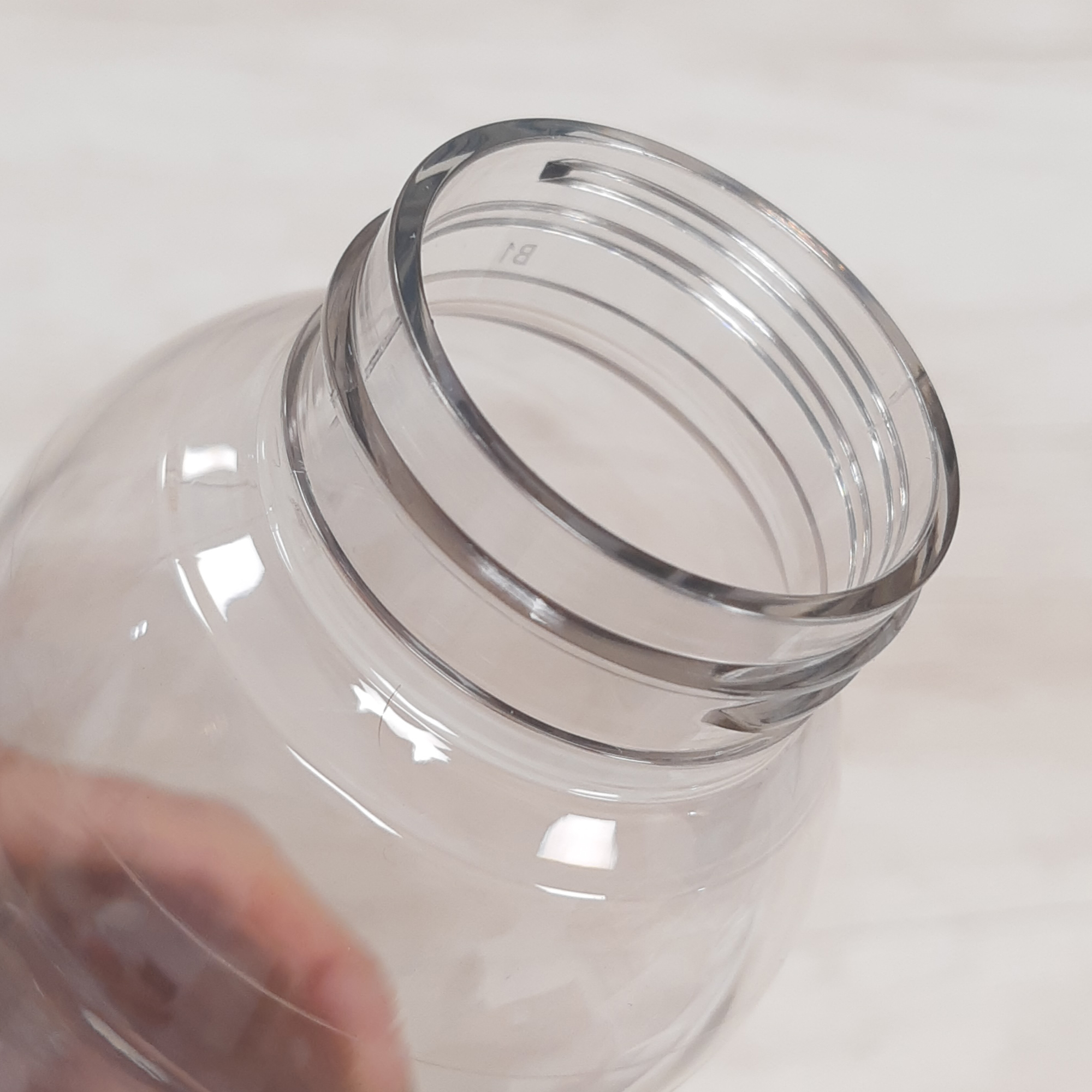 Botella de plástico transparente con tapa a rosca plástica.