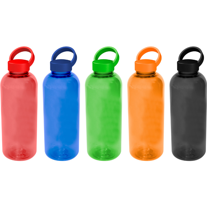 Ø 8 x 20,5 cm. Plástico PET. Capacidad 810 ml. Peso del botella: 63 gramos - Peso de la tapa: 12 gramos. Plástico. Cuerpo de color traslucido. No apto para bebidas calientes. Libre de bpa.