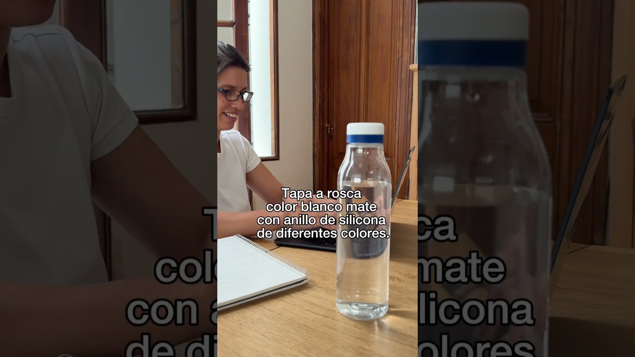 Botella de plástico transparente con tapa a rosca color blanco mate con anillo de silicona de diferentes colores.