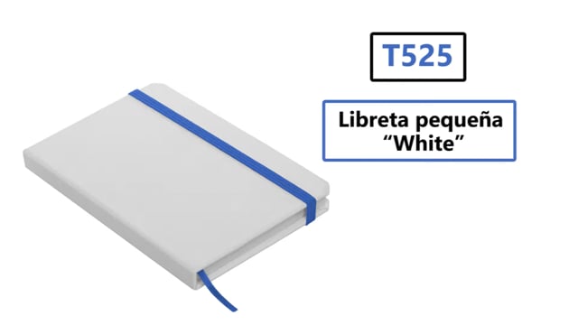 14,3 x 9,2 x 1,1 cm. Cartón. Libreta de tapa dura color blanco. Contiene 80 hojas rayadas, señalador y cierra con banda elástica del mismo color.