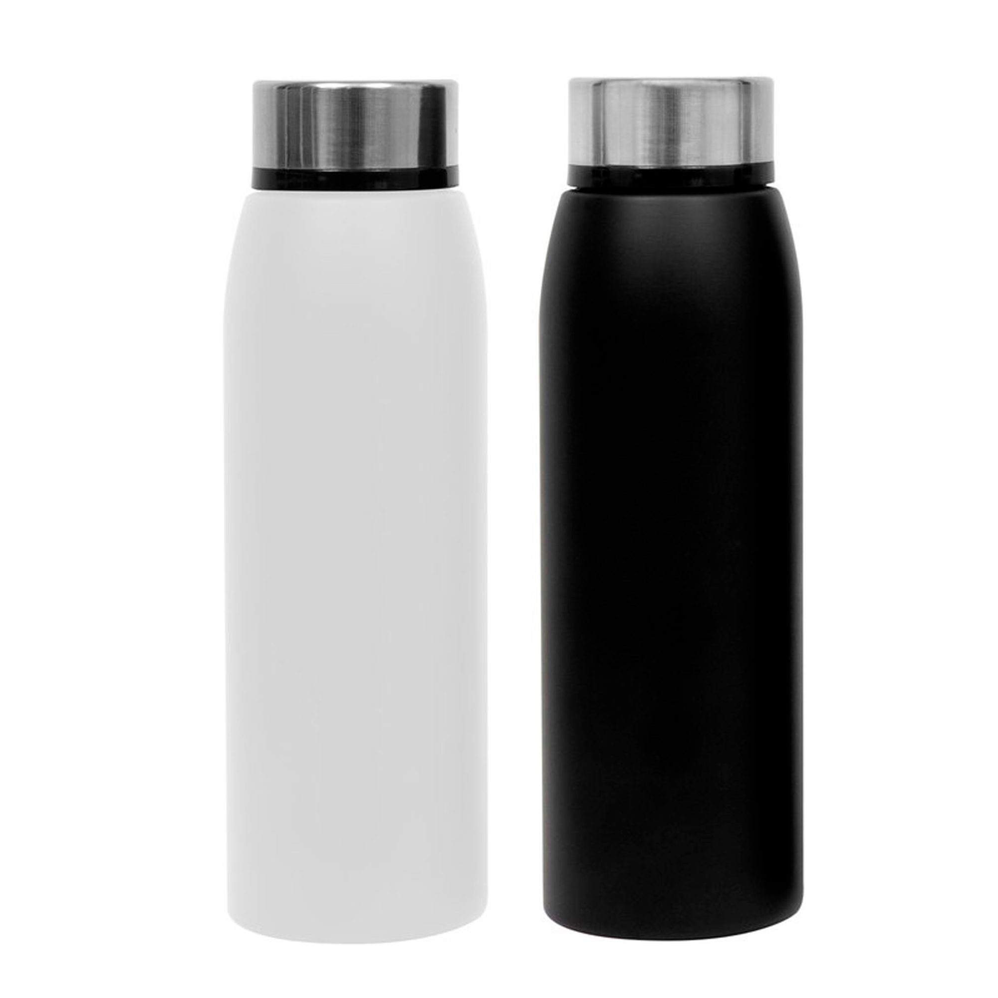Ø 7 x 23,5 cm. Capacidad 500 ml. Botella doble pared, sellada al vacío. Interior de acero 304 y exterior de acero 201. Cuerpo color negro y tapa a rosca de acero. Mantiene hasta 12 hs la temperatura de las bebidas calientes y 24 hs de las bebidas frías. Presentación en caja de regalo.