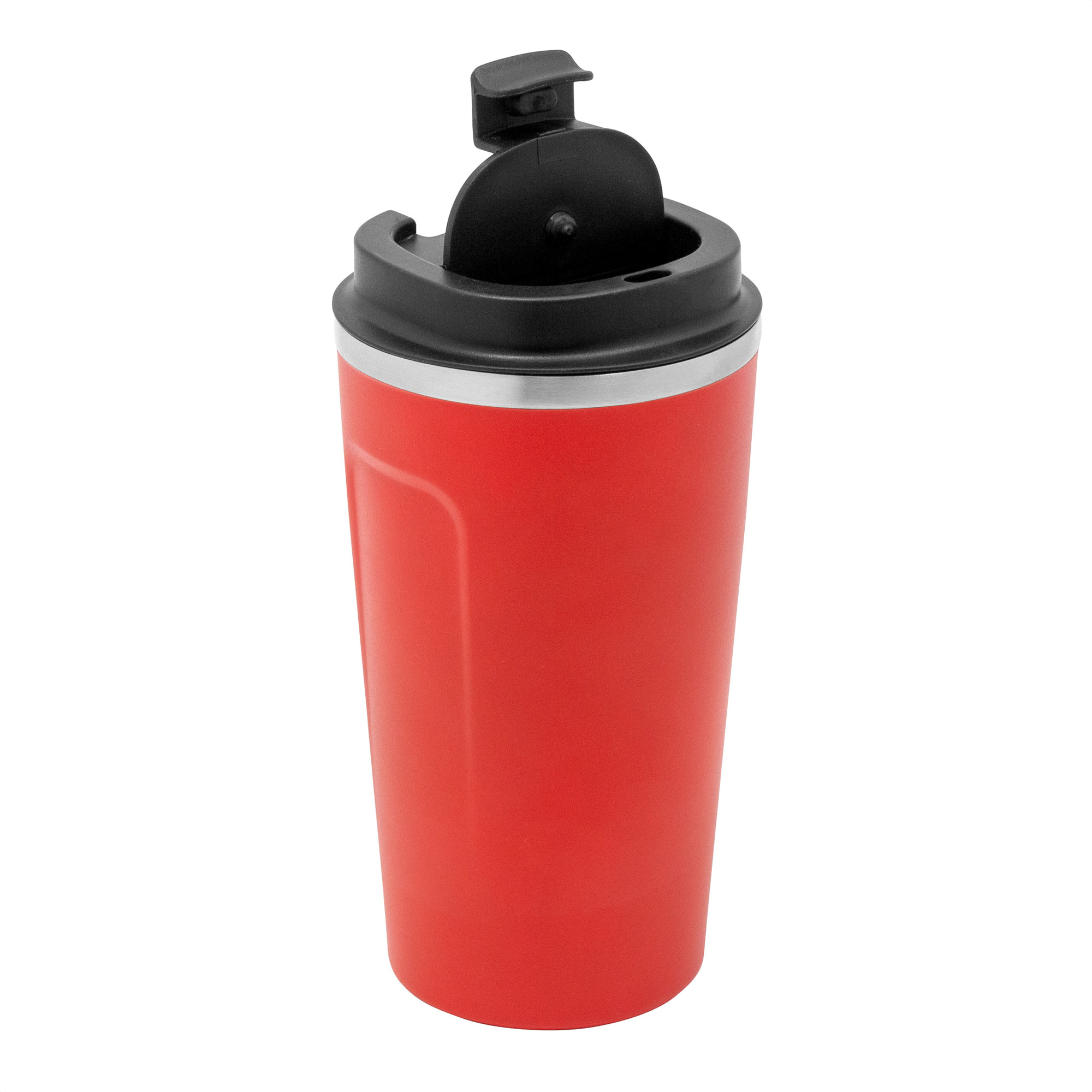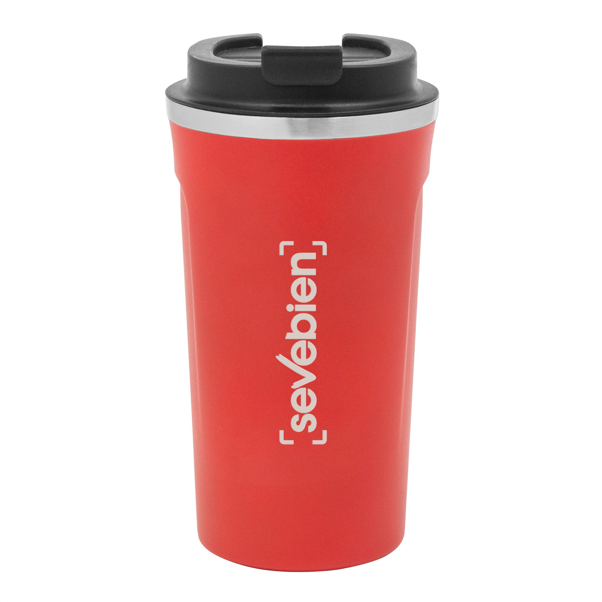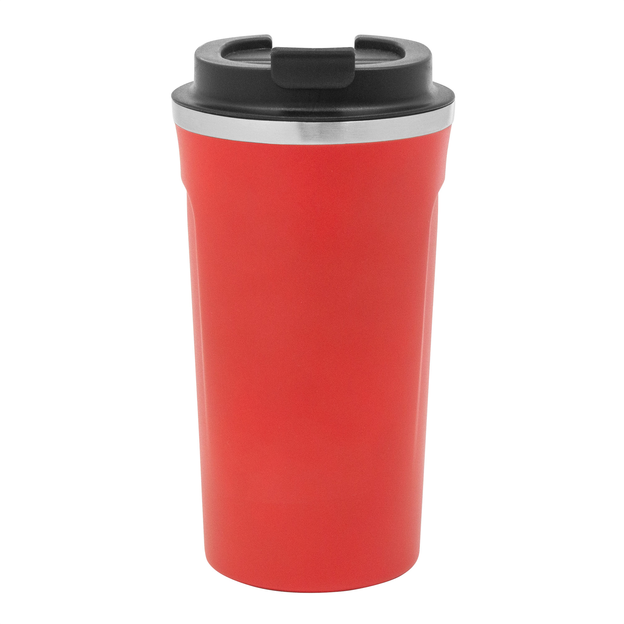 Ø 9 x 16,5 cm. Capacidad 500 ml. Acero Inoxidable. Mug doble pared, sellado al vacío. Interior acero 304 y exterior acero 201. Tapa plástica a rosca con seguro hermético antiderrame. Pintura Powder Coat (pintura mas duradera y resistente a la corrosión y el paso del tiempo).Mantiene hasta 12 hs la temperatura de las bebidas calientes y 24 hs de las bebidas frías. Presentación en caja de regalo.