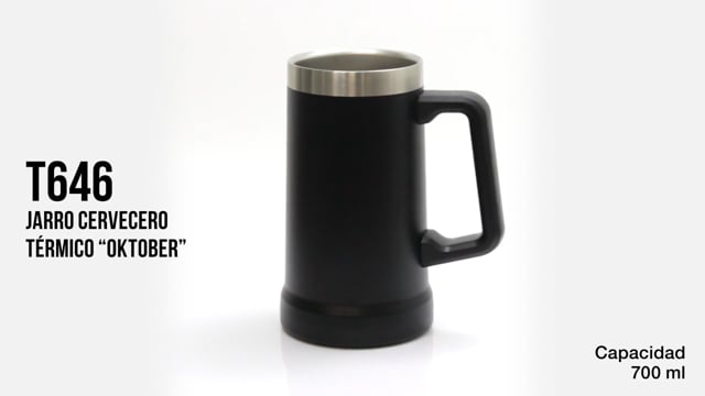 Jarro cervecero doble pared, sellado al vacío. Interior en acero 304 y exterior en acero 201. Mango Plástico. Pintura Powder coat (pintura más duradera y resistente a la corrosión y el paso del tiempo).