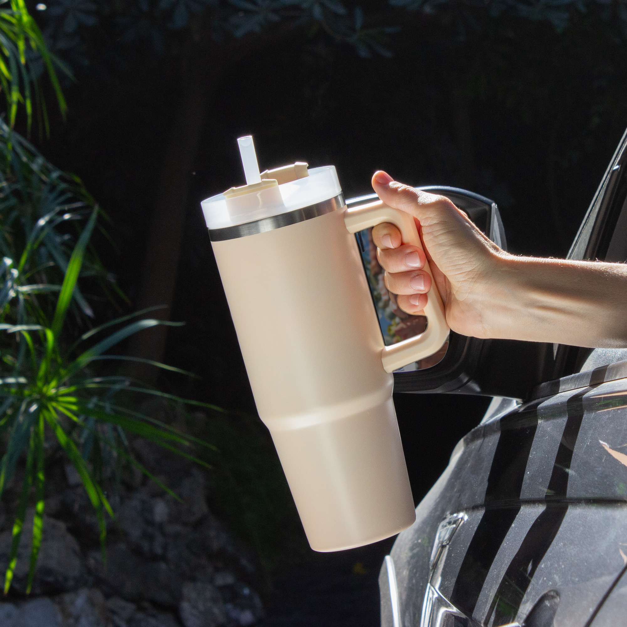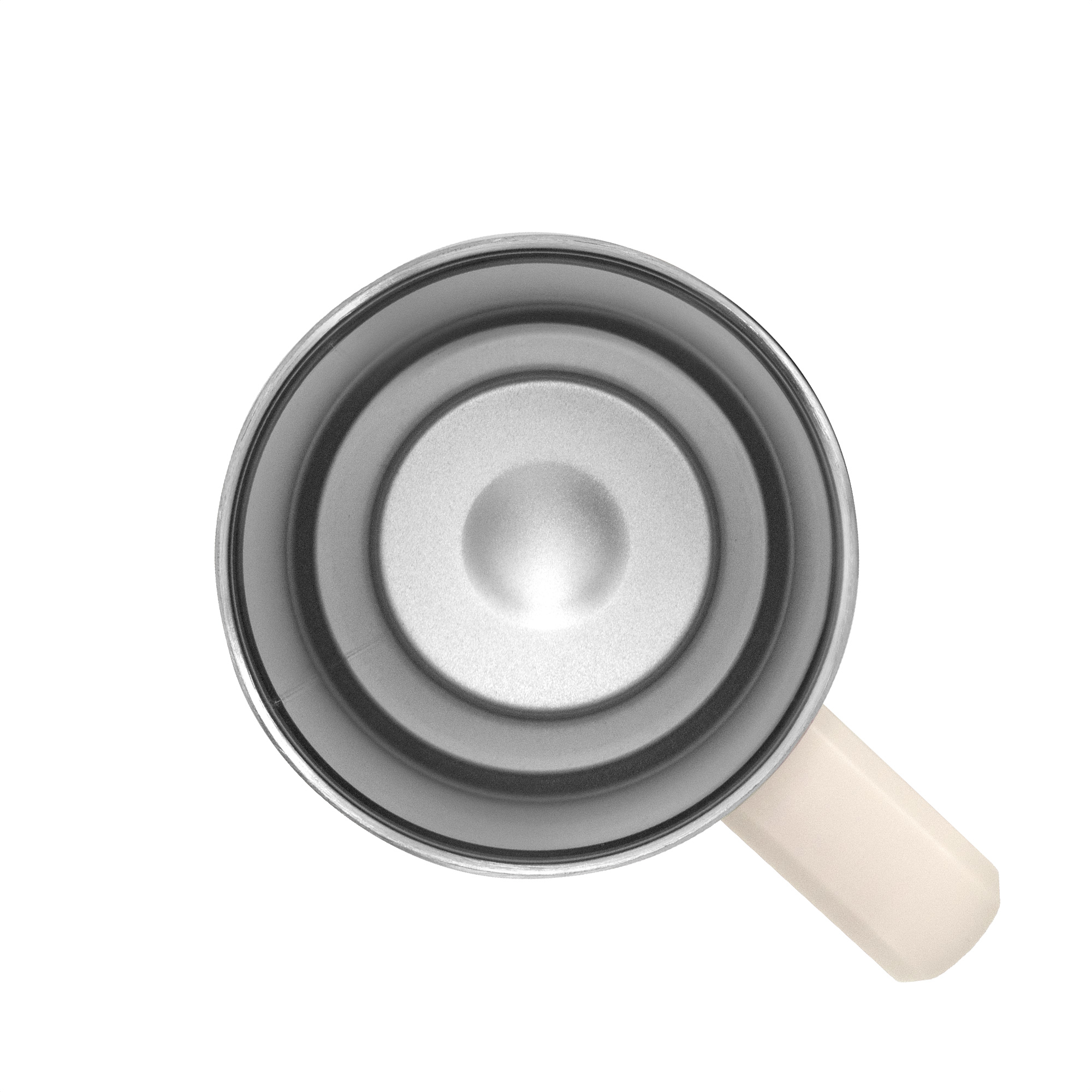 Mug doble pared, sellado al vacío con sorbete. Tecnología Vacuum. Interior en acero 304 y exterior en acero 201. Tapa plástica transparente a rosca con anillo de silicona. Cierre giratorio porta sorbete. Sorbete plástico translucido. Pintura exterior con acabado mate. Mantiene hasta 12 hs la temperatura de las bebidas calientes y 24 hs de las bebidas frías.